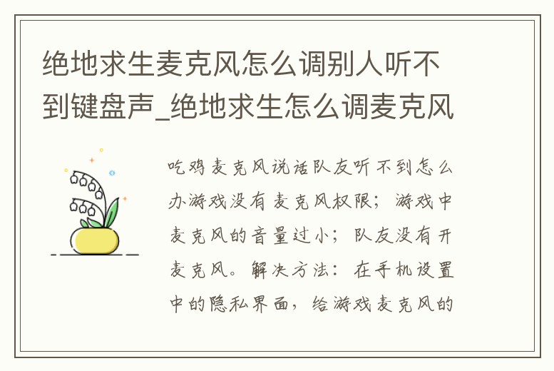 絕地求生麥克風(fēng)怎么調(diào)別人聽不到鍵盤聲_絕地求生怎么調(diào)麥克風(fēng)音量