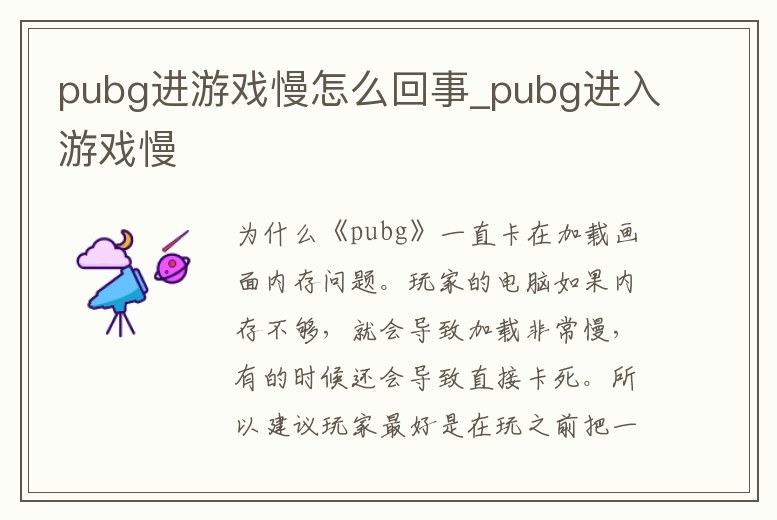 pubg進(jìn)游戲慢怎么回事_pubg進(jìn)入游戲慢