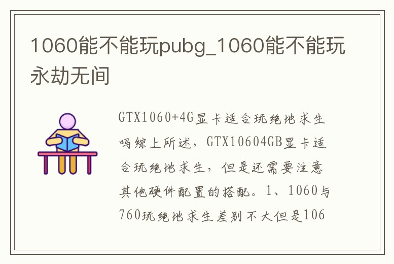 GTX1060+4G顯卡適合玩絕地求生嗎綜上所述,GTX10604GB顯卡適合玩絕地求生,但是還需要注意其他硬件配置的搭配。1、1060與760玩絕地求生差別不大但是1060更適合玩絕地求生,因為它有更強大的圖形處理能力,可以提供更流暢的游戲體驗。此外,1060還擁有更多的顯存,可以支持更多的游戲效果,以及更高的游戲設置。2、絕地