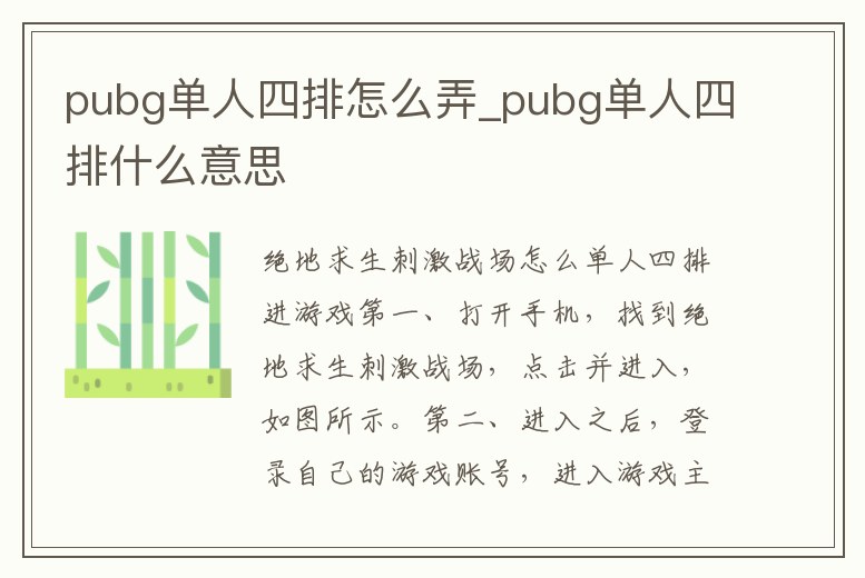 pubg單人四排怎么弄_pubg單人四排什么意思