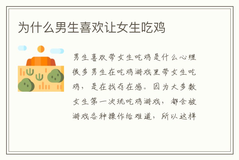 8、一個(gè)男生主動(dòng)叫一個(gè)女生一起玩吃雞說明什么,女生技術(shù)不算好,一般般的