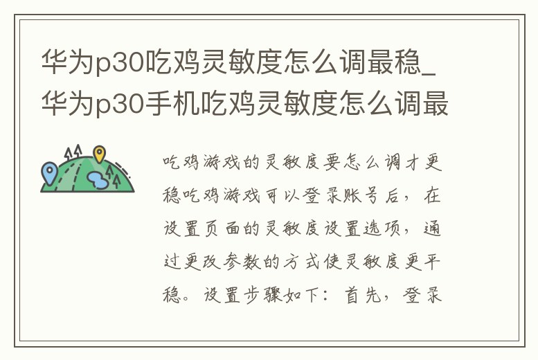 - 華為p30吃雞靈敏度怎么調(diào)最穩(wěn)_華為p30手機(jī)吃雞靈敏度怎么調(diào)最穩(wěn)