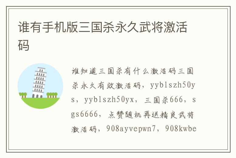 誰有手機(jī)版三國殺永久武將激活碼