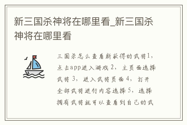 新三國殺神將在哪里看_新三國殺神將在哪里看