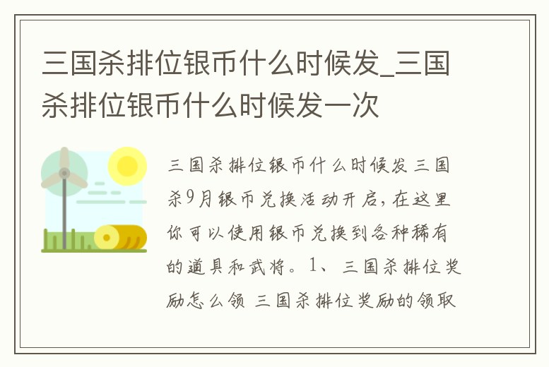 - 三國殺排位銀幣什么時候發(fā)_三國殺排位銀幣什么時候發(fā)一次
