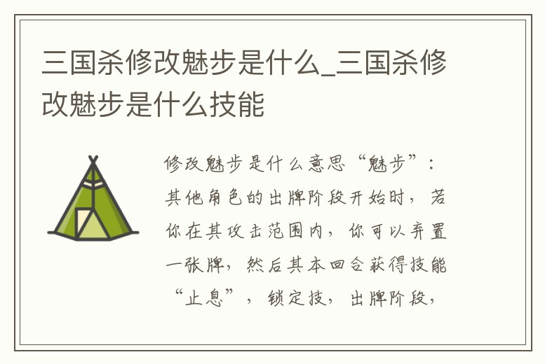 三國殺修改魅步是什么_三國殺修改魅步是什么技能