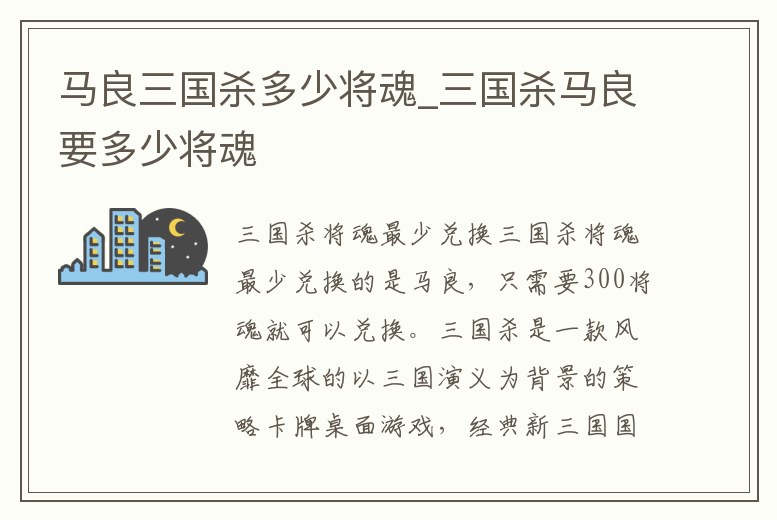 馬良三國殺多少將魂_三國殺馬良要多少將魂