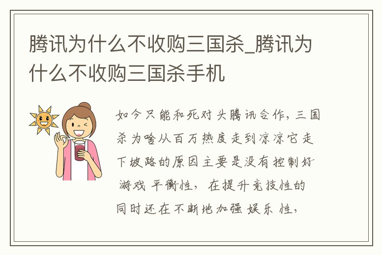 騰訊為什么不收購三國殺_騰訊為什么不收購三國殺手機(jī)