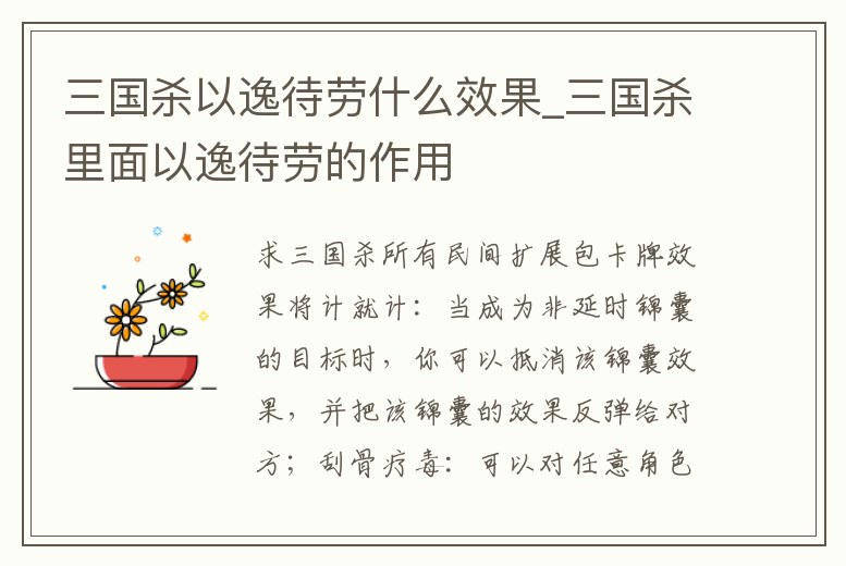 三國殺以逸待勞什么效果_三國殺里面以逸待勞的作用