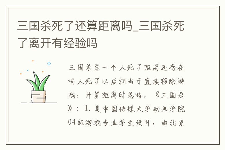 - 三國(guó)殺死了還算距離嗎_三國(guó)殺死了離開(kāi)有經(jīng)驗(yàn)嗎