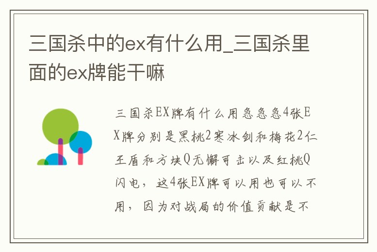 三國殺中的ex有什么用_三國殺里面的ex牌能干嘛