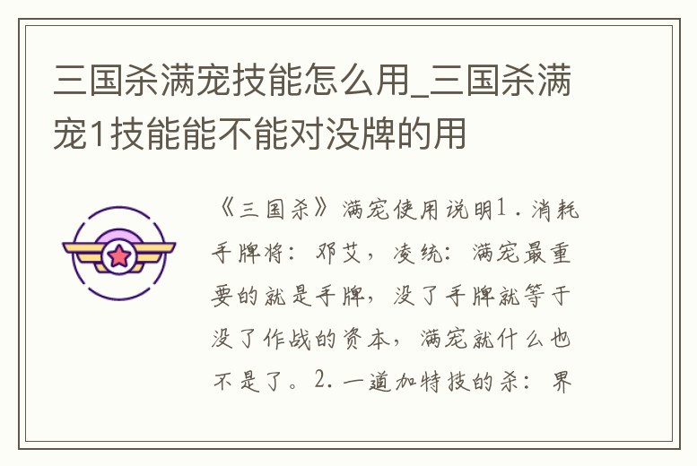 三國殺滿寵技能怎么用_三國殺滿寵1技能能不能對沒牌的用