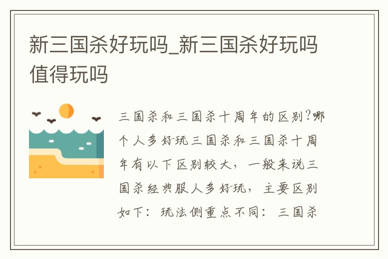 新三國殺好玩嗎_新三國殺好玩嗎值得玩嗎