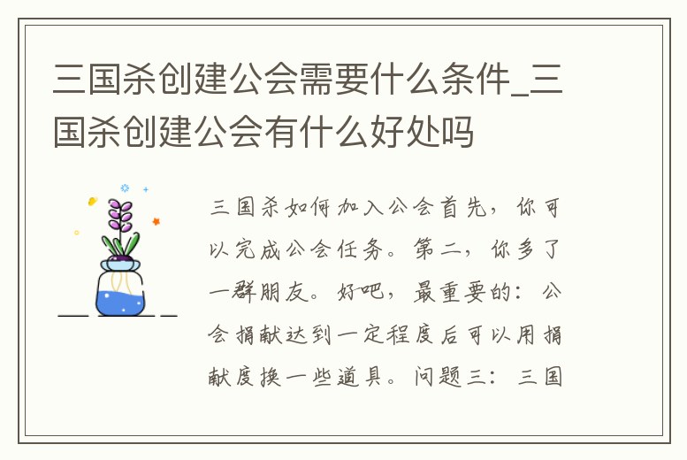 三國殺創(chuàng)建公會需要什么條件_三國殺創(chuàng)建公會有什么好處嗎