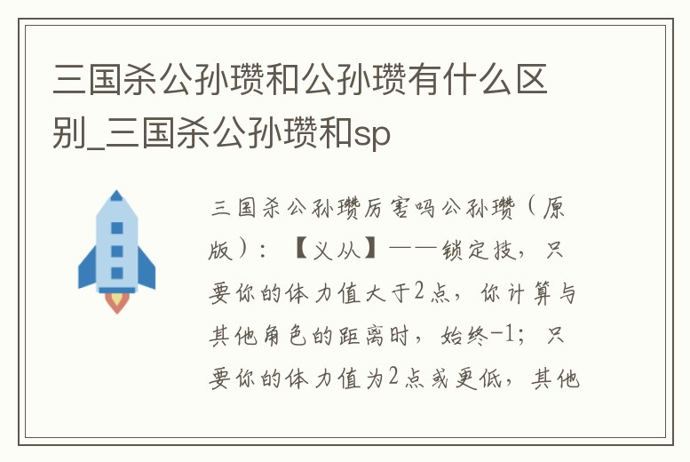 三國殺公孫瓚和公孫瓚有什么區(qū)別_三國殺公孫瓚和sp