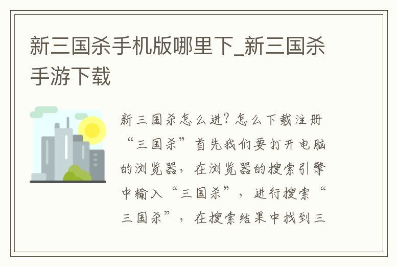 新三國殺手機(jī)版哪里下_新三國殺手游下載