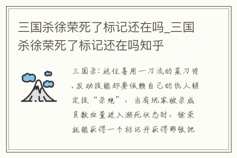 三國殺徐榮死了標記還在嗎_三國殺徐榮死了標記還在嗎知乎