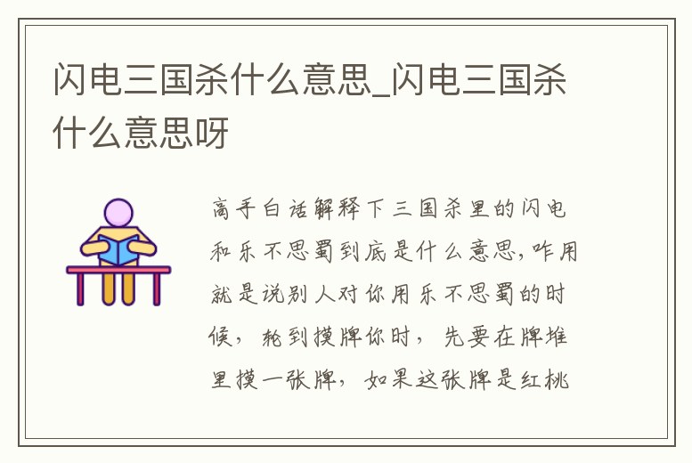閃電三國殺什么意思_閃電三國殺什么意思呀
