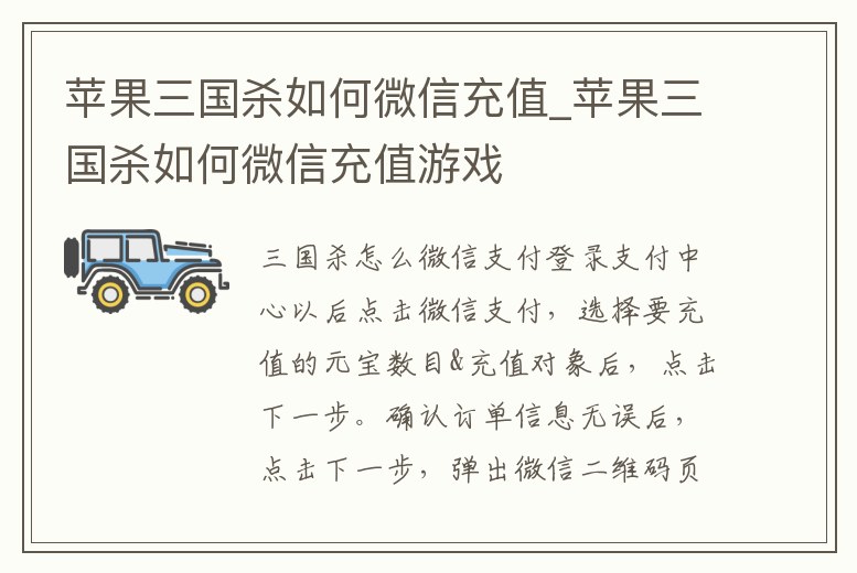蘋果三國殺如何微信充值_蘋果三國殺如何微信充值游戲