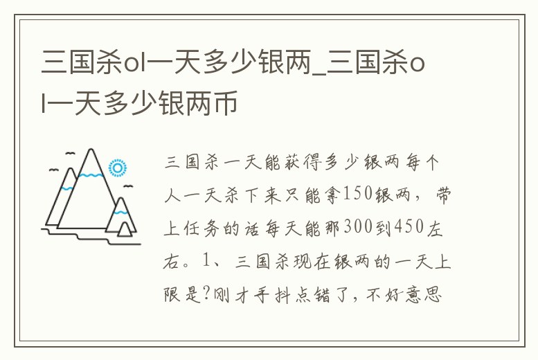 三國殺ol一天多少銀兩_三國殺ol一天多少銀兩幣