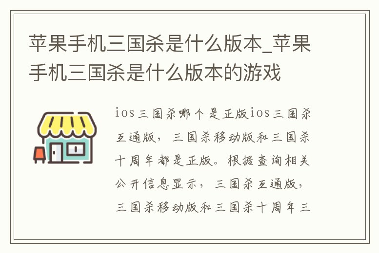蘋果手機三國殺是什么版本_蘋果手機三國殺是什么版本的游戲