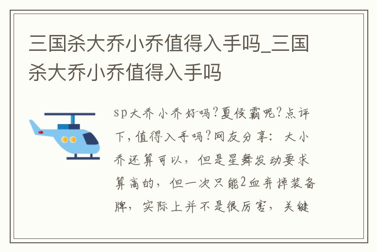 三國殺大喬小喬值得入手嗎_三國殺大喬小喬值得入手嗎