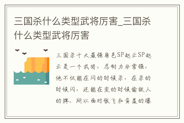 三國殺什么類型武將厲害_三國殺什么類型武將厲害