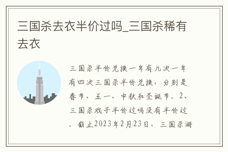 三國(guó)殺去衣半價(jià)過嗎_三國(guó)殺稀有去衣