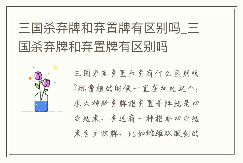 三國殺棄牌和棄置牌有區(qū)別嗎_三國殺棄牌和棄置牌有區(qū)別嗎