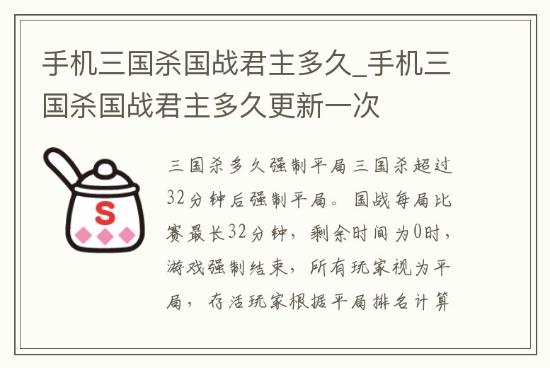 - 手機(jī)三國(guó)殺國(guó)戰(zhàn)君主多久_手機(jī)三國(guó)殺國(guó)戰(zhàn)君主多久更新一次