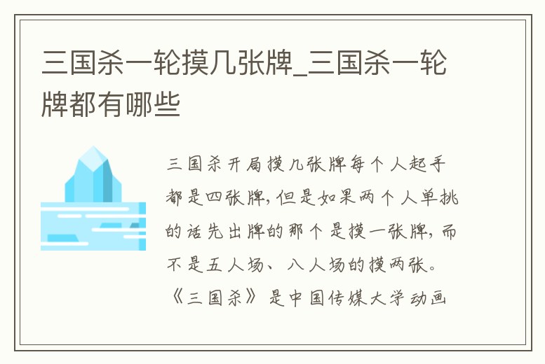 三國殺一輪摸幾張牌_三國殺一輪牌都有哪些