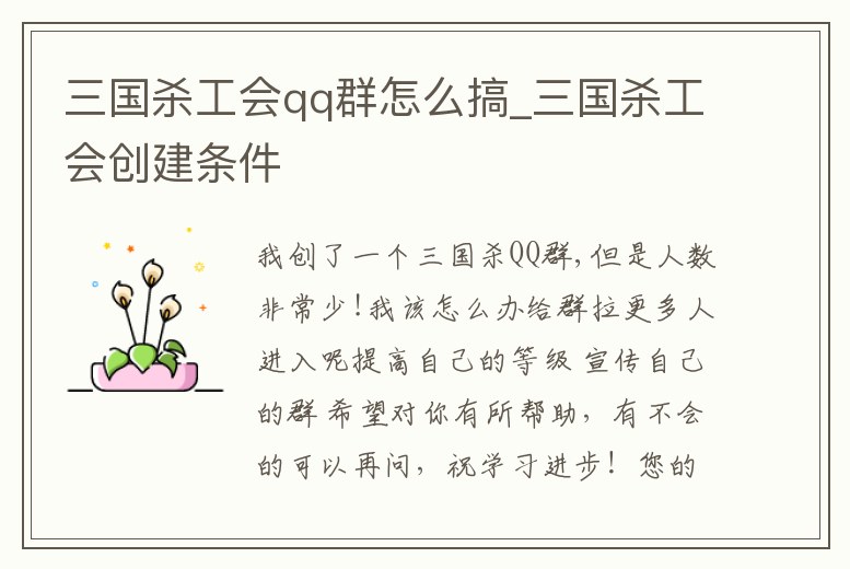 三國殺工會qq群怎么搞_三國殺工會創建條件