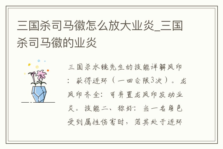 三國殺司馬徽怎么放大業(yè)炎_三國殺司馬徽的業(yè)炎