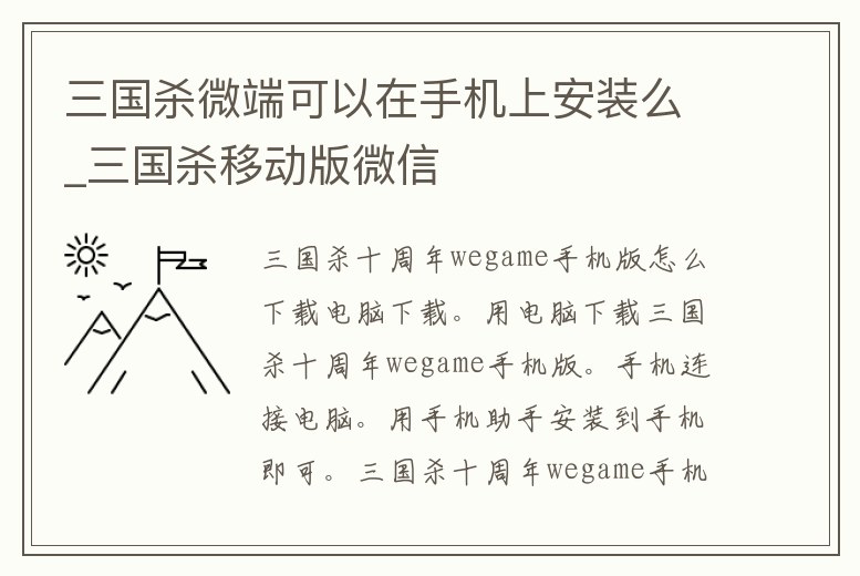 三國殺微端可以在手機上安裝么_三國殺移動版微信