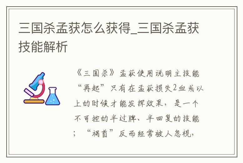 三國殺孟獲怎么獲得_三國殺孟獲技能解析