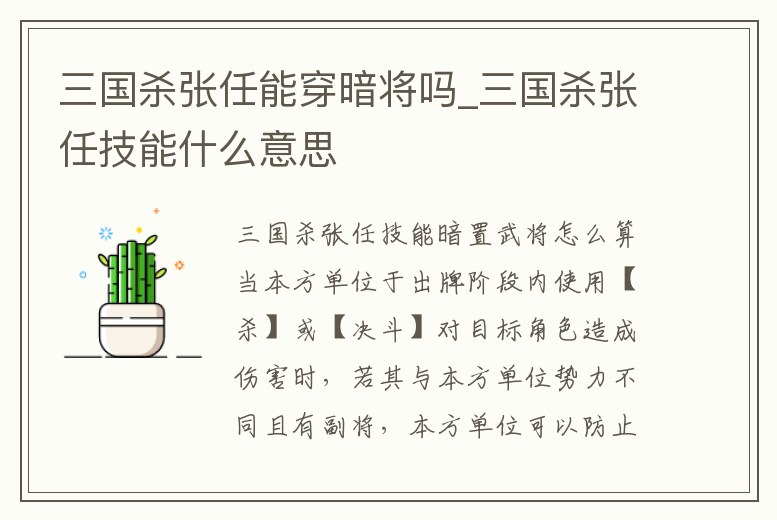 三國殺張任能穿暗將嗎_三國殺張任技能什么意思
