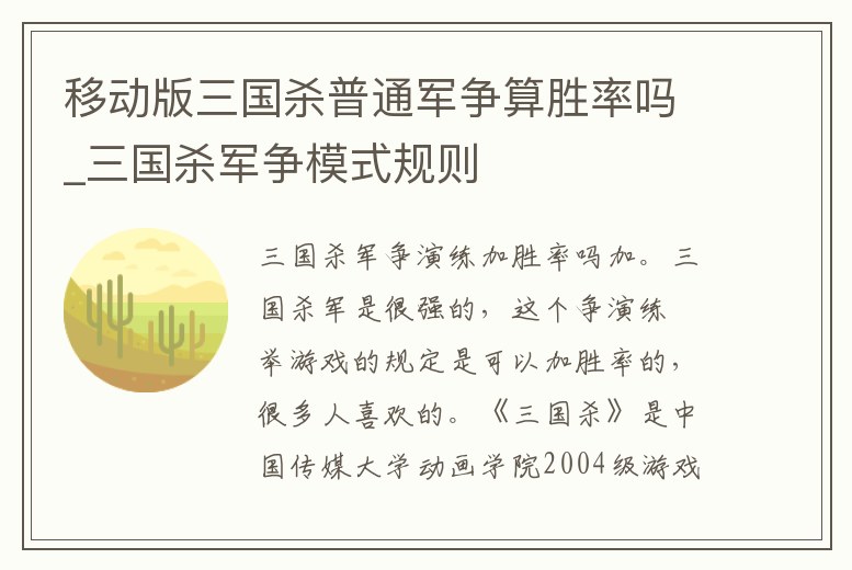 移動(dòng)版三國殺普通軍爭算勝率嗎_三國殺軍爭模式規(guī)則