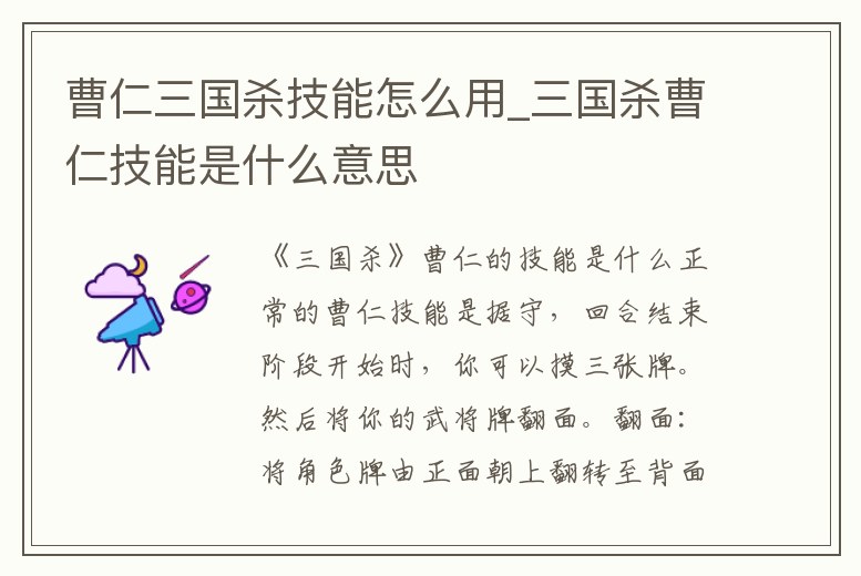 曹仁三國殺技能怎么用_三國殺曹仁技能是什么意思