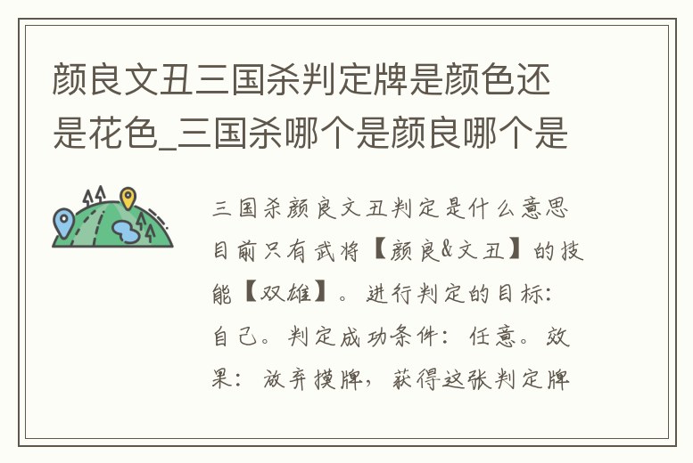 顏良文丑三國殺判定牌是顏色還是花色_三國殺哪個是顏良哪個是文丑