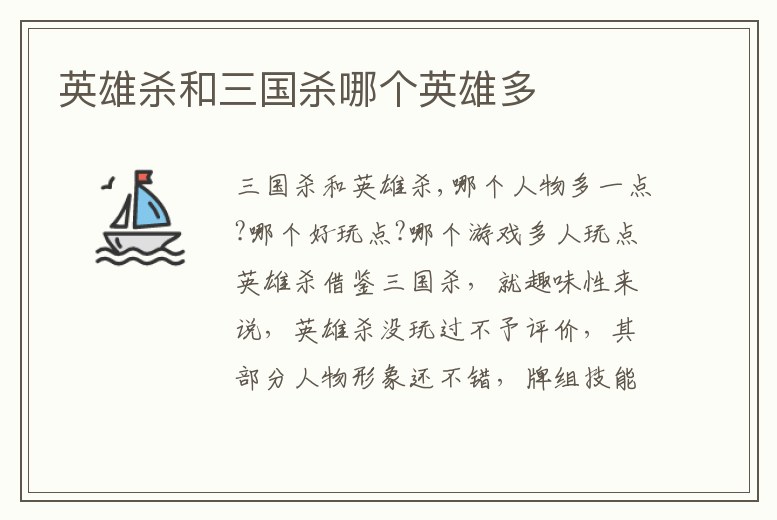 三國殺和英雄殺,哪個人物多一點?哪個好玩點?哪個游戲多人玩點