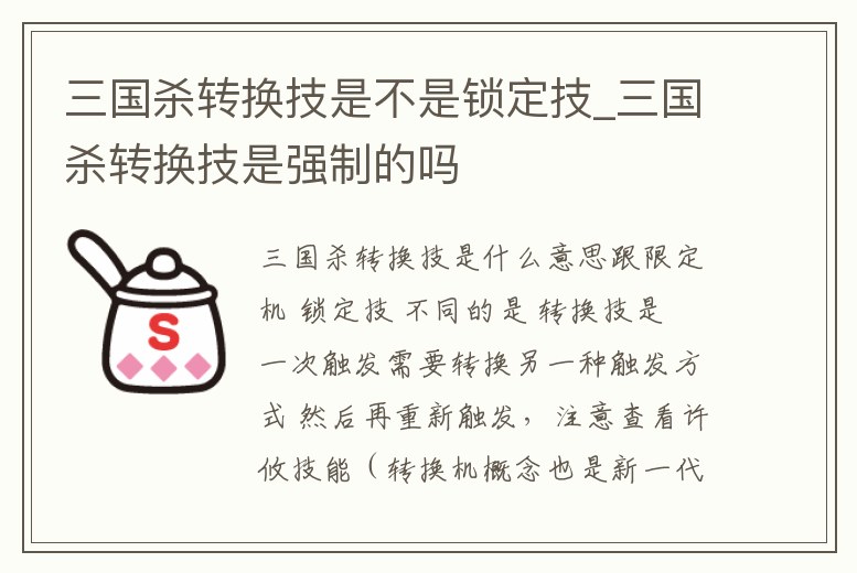 三國殺轉換技是不是鎖定技_三國殺轉換技是強制的嗎