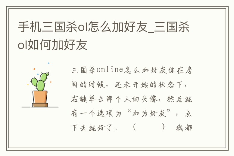 手機三國殺ol怎么加好友_三國殺ol如何加好友