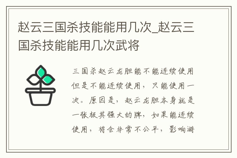 趙云三國殺技能能用幾次_趙云三國殺技能能用幾次武將