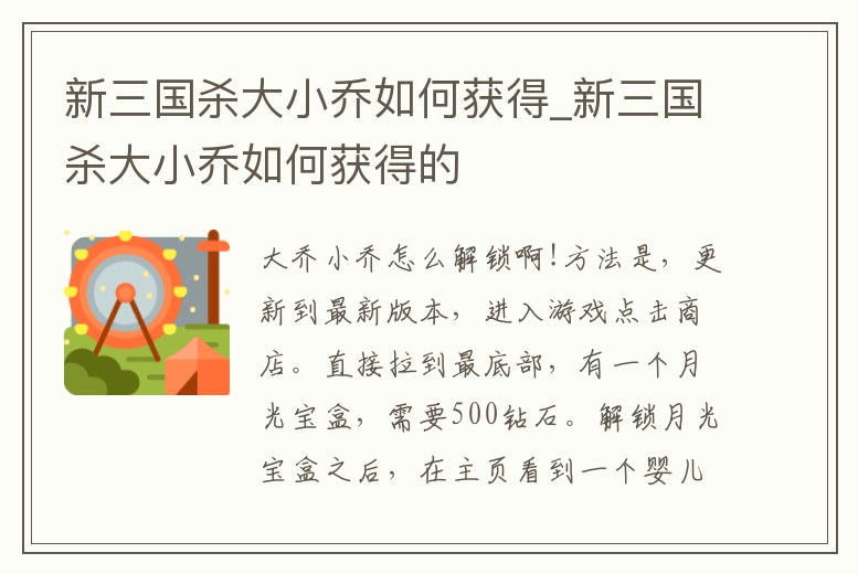 新三國殺大小喬如何獲得_新三國殺大小喬如何獲得的