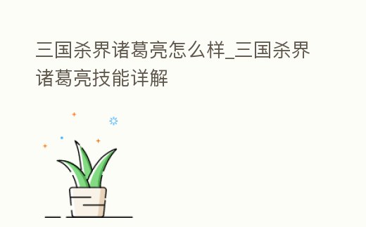 三國殺界諸葛亮怎么樣_三國殺界諸葛亮技能詳解