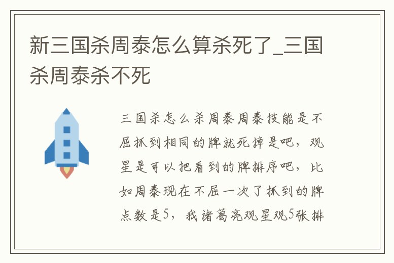 新三國殺周泰怎么算殺死了_三國殺周泰殺不死