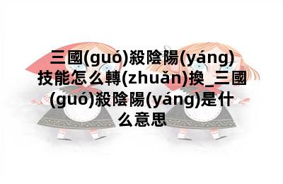 三國(guó)殺陰陽(yáng)技能怎么轉(zhuǎn)換_三國(guó)殺陰陽(yáng)是什么意思