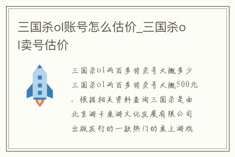 三國殺ol賬號怎么估價_三國殺ol賣號估價