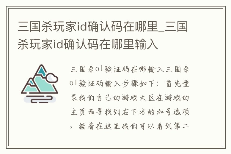 三國殺玩家id確認碼在哪里_三國殺玩家id確認碼在哪里輸入