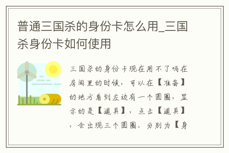 普通三國殺的身份卡怎么用_三國殺身份卡如何使用